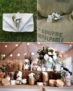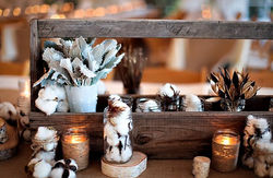 Нежное и воздушное оформление для свадьбы можно создать с помощью соцветий хлопка. Цветовая гамма – оттенки айвори, белые, бежевые и коричневые тона. Оформление свадьбы может быть как в классическом стиле, так и в модной рустиковой стилистике.